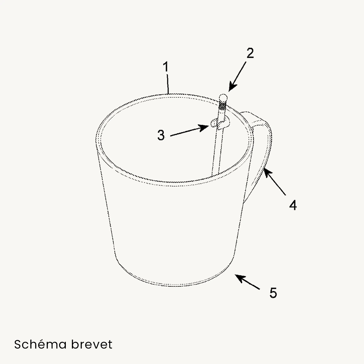 1 Le diamètre de la tasse est spécialement conçu de manière à pouvoir facilement récupérer l'extrémité arrondie du mélangeur, une fois celui-ci hors de son clip, évitant ainsi tout contact des doigts avec le liquide.