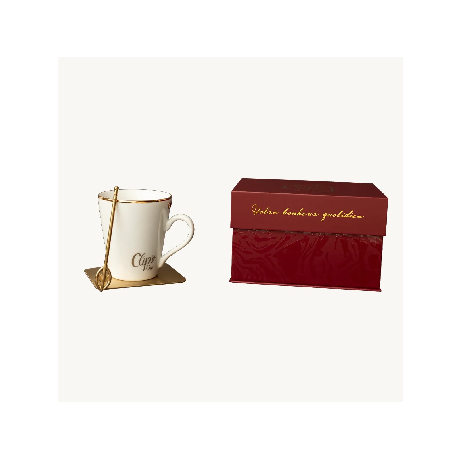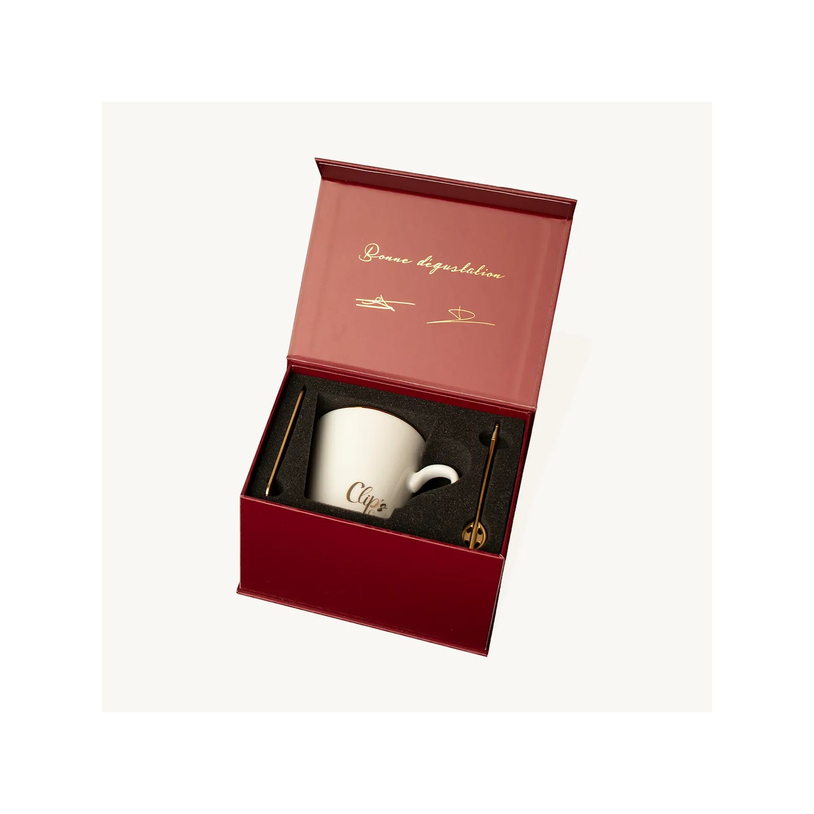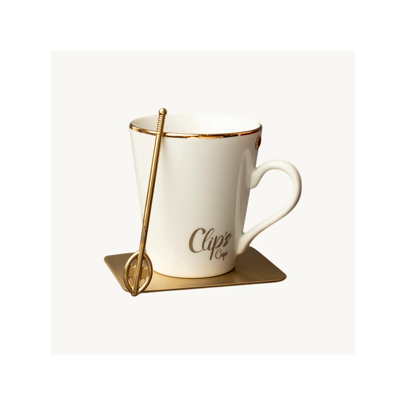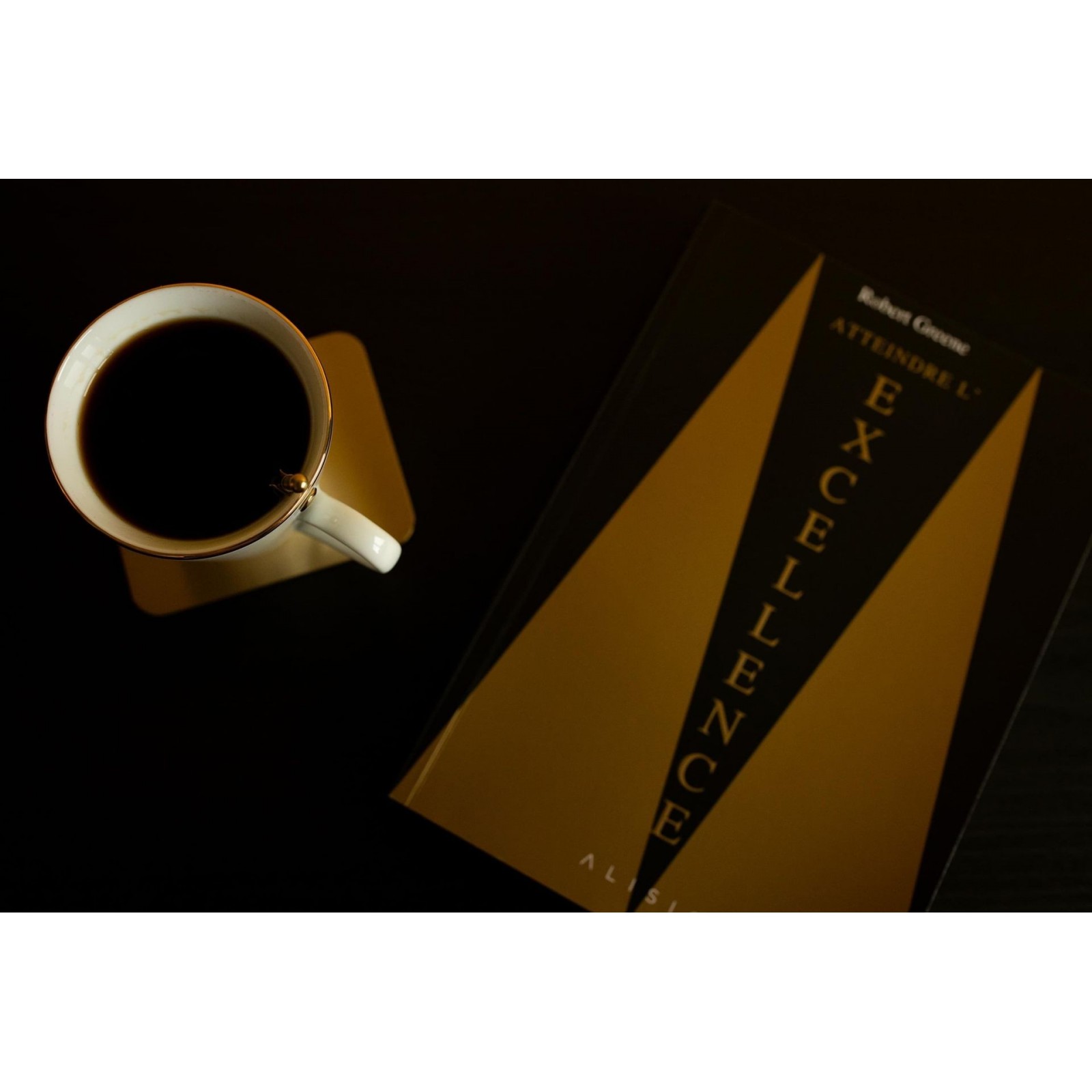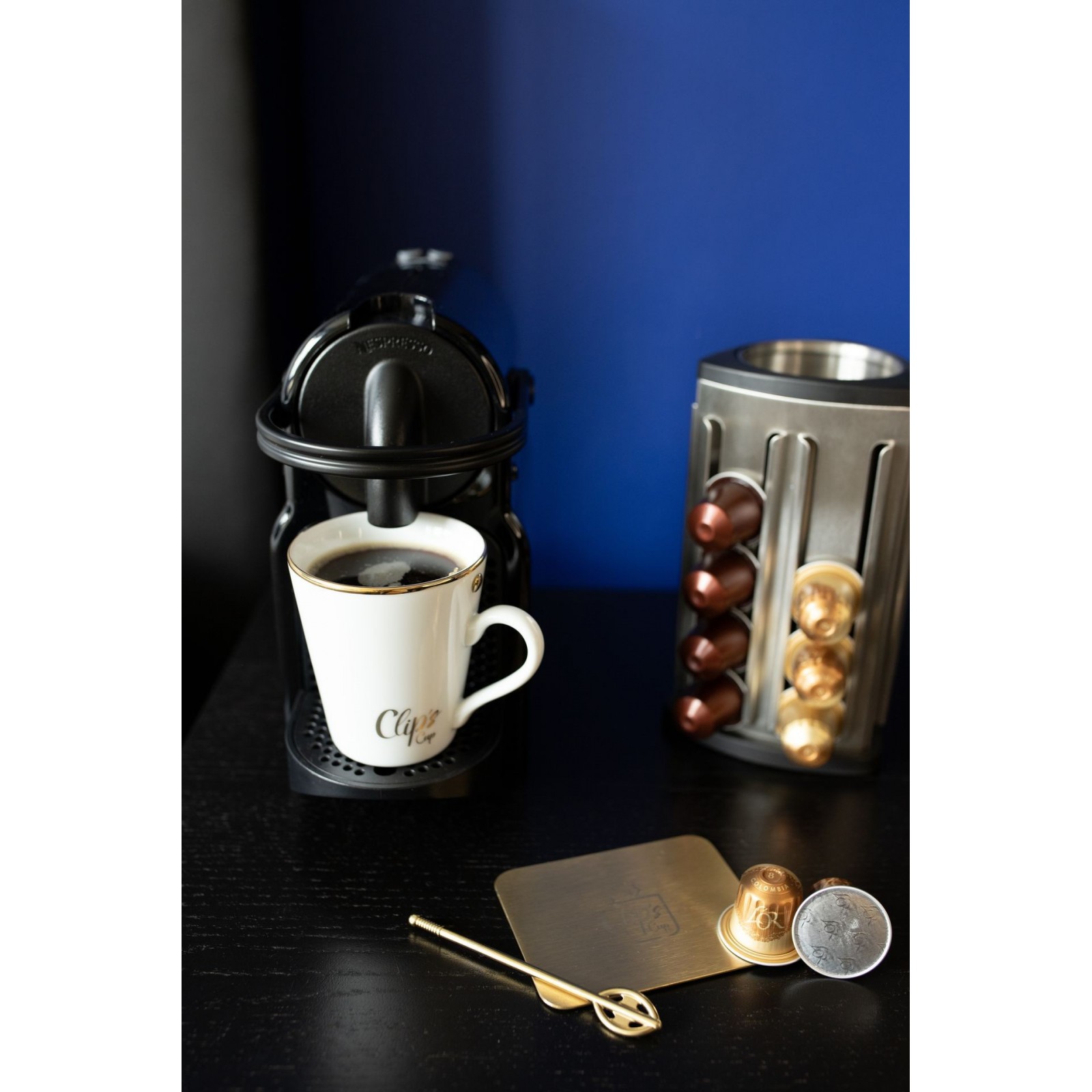 - Sous-tasse en inox brossé doré gravée de notre logo officiel.